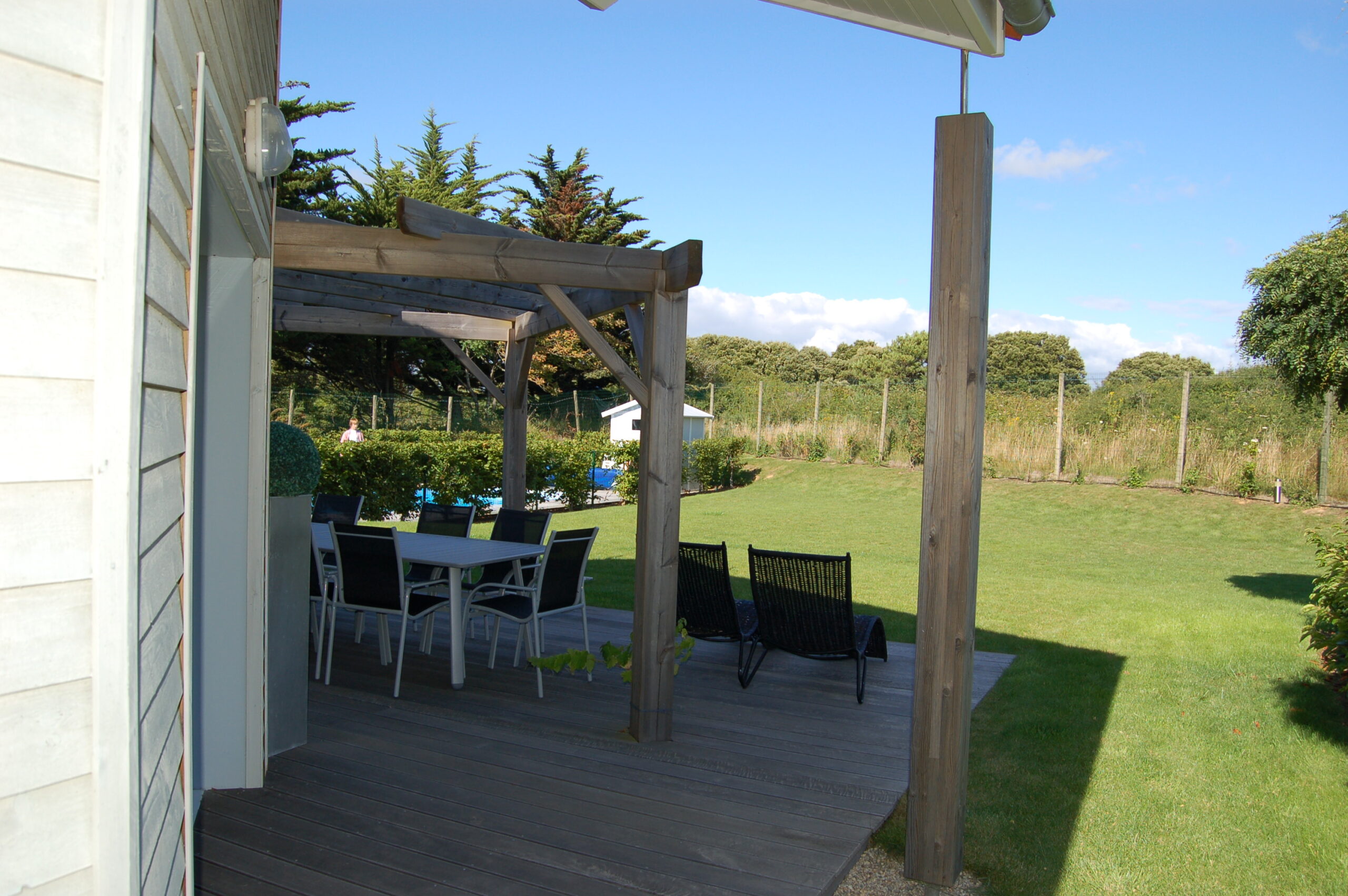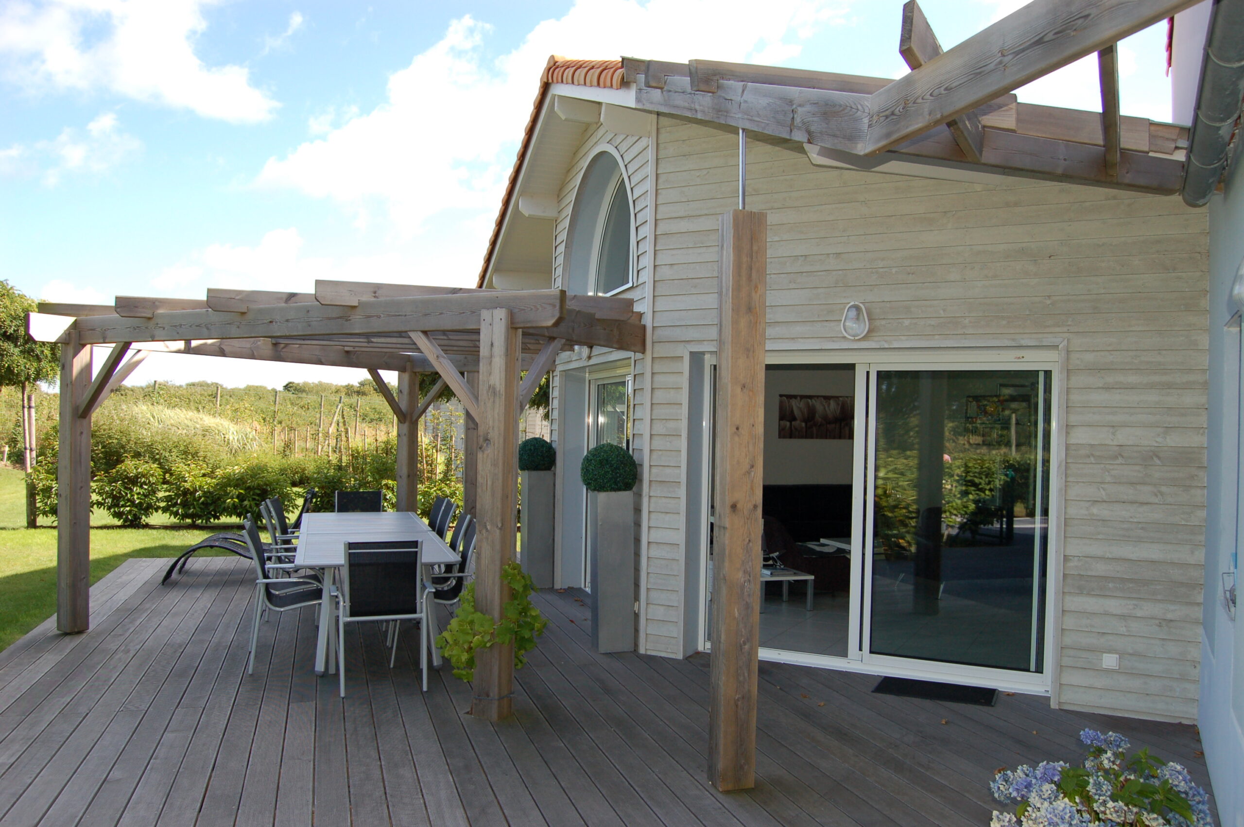 Relax on one of the terraces surrounding the house, equipped with modern and solid outdoor furniture.