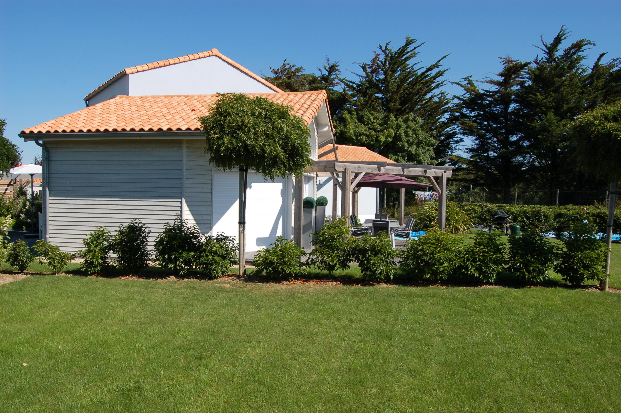 Located on the largest and highest plot of Résidence Les Jardins des Sables d'Olonne, you will find a heated and securely fenced private pool with outdoor shower in the very spacious garden.